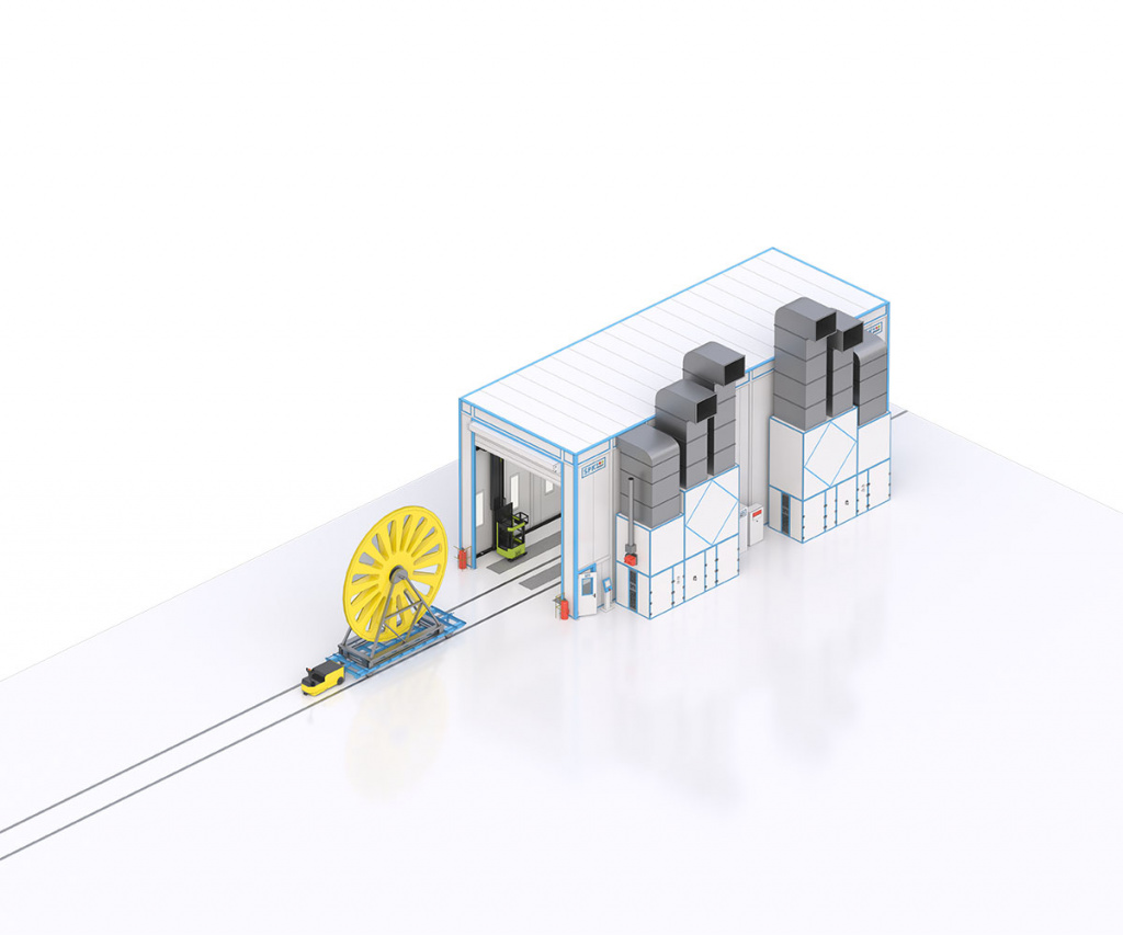 Окрасочно-сушильная камера проходного типа SPK-SCB-18.6.7 (далее — ОСК) предназначена для подготовки изделий к покраске, нанесения на них лакокрасочных покрытий и их сушки при повышенной температуре. В камере обеспечивается равномерный поток очищенного, подогретого воздуха. Направление потока воздуха